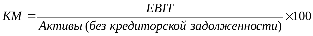 К5 – отношение объема реализации к активам; чистая выручка от реализации / объем актива.