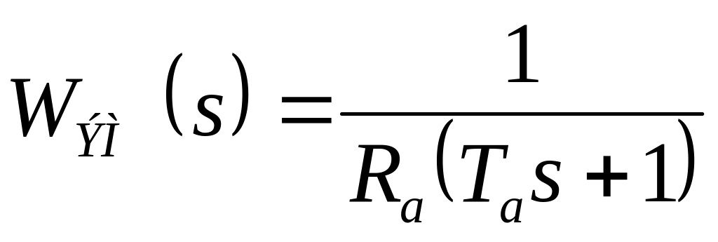 В системе без обратной связи формирование тока обеспечивается двумя динамическими звеньями. Это преобразователь, свойства по управлению которого описываются передаточной функцией (ПФ)