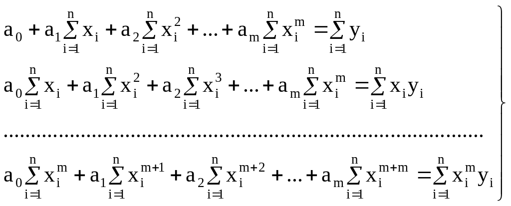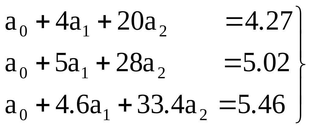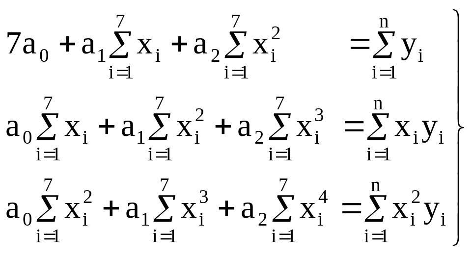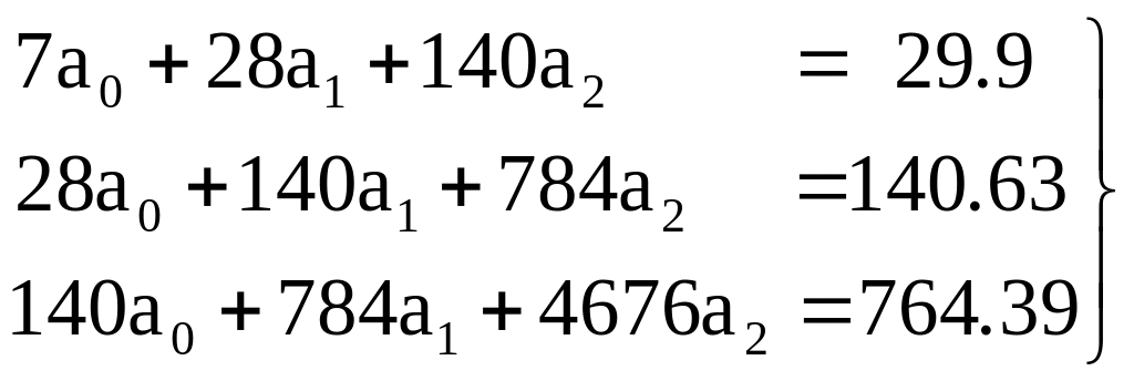 10.2 Исследуя таблицу исходных данных, составить систему нормальных уравнений вида (5)
