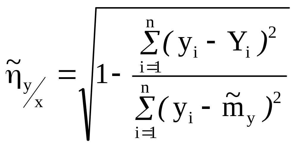 7. Если уравнение регрессии нелинейно, то его адекватность проверяется корреляционным отношением, оценка которого