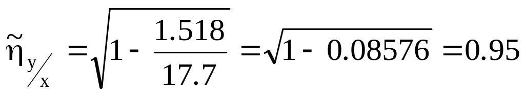 11.4. Так как уравнение регрессии нелинейно, то будем вычислять корреляционное отношение по формуле (7)