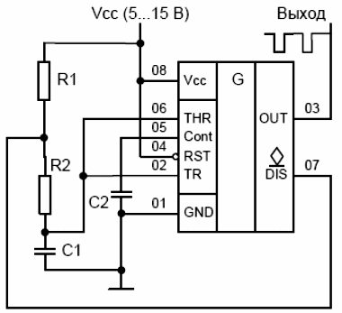 Рис. П1.3. Схема включения таймера в режиме генератора импульсов – ГИ