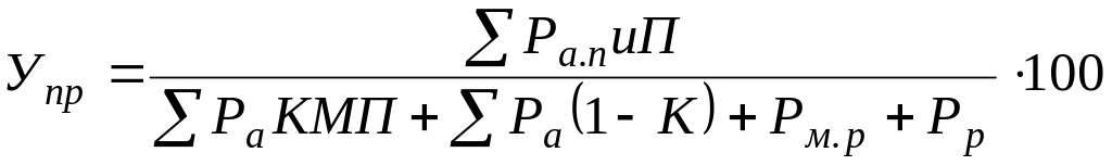 Показатель Уп выражается отношением приведенных затрат времени машинных процессов к общим приведенным затратам: