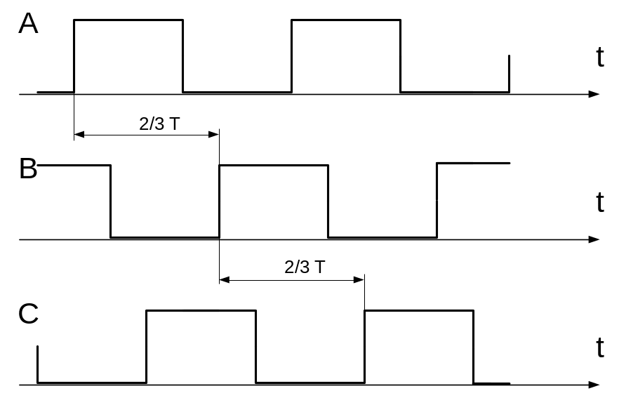 Для использования совместно с различными датчиками и исполнительными системами роботов нередко требуются многофазные генераторы (МФГ) – схемы, выдающие на множество своих выходов упорядоченную систему импульсов. МФГ обычно состоят из генератора тактовых импульсов и формирователя системы импульсов (распределителя). Простейшие разновидности МФГ – генераторы обегающего импульса (паузы) и генераторы многофазной системы меандров. Различные схемы генераторов тактовых импульсов рассмотрены в /5, 6/.