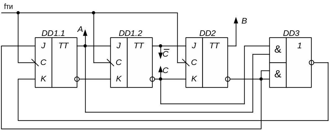 Рассмотрим, например, схему из /12/ на JK-триггерах – рис. 7.2.