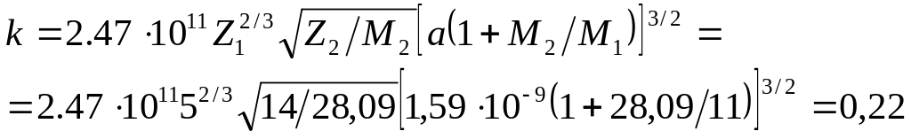Для расчета необходимо определить радиус экранирования а, коэффициент передачи максимальной энергии γ, параметры электронного торможения k и β, нормирующие множители L и F, С помощью справочника находим атомные номера и массы бора и кремния и собственную концентрацию атомов в кремнии Z1 = 5, Z2=14, М1=11, М2 = 28,09, N2 = 4,98∙1022 см-2.