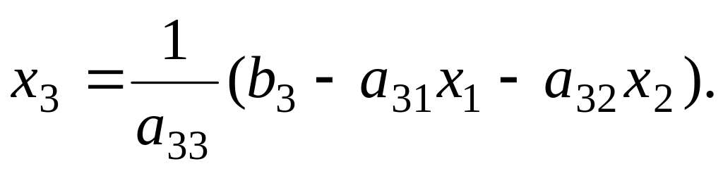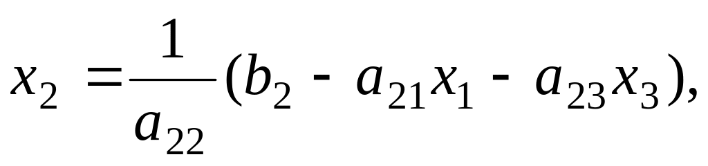 115. Этот метод представляет собой некоторую модификацию метода простой итерации. Основная его идея заключается в том, что при вычислении (k+1)-го приближения неизвестной xi учитываются уже вычисленные ранее (k+1)-е приближения (x1 x2, ..., xi-1).