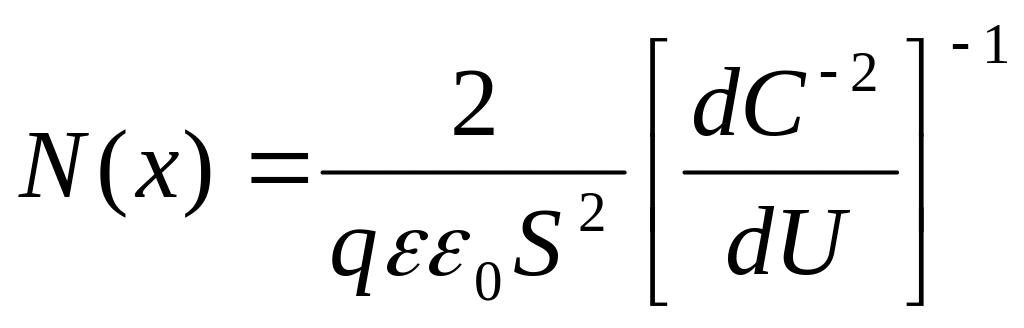 3. Найти концентрацию легирующей примеси в подложке. Для этого перестроить вольт-фарадную характеристику в координатах 1/С2 по оси y и U по оси x, найти dC-2/dU и по следующей формуле определить N(х)