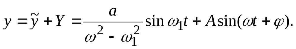 б) = , т. е. частота внешней периодической силы совпадает с частотой свободных колебаний груза. Так как i =i корень характеристического уравнения , то в этом случае частное решение следует искать в виде