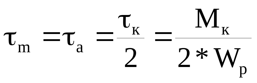 б) Касательные напряжения изменяются по отнулевому циклу, при котором амплитуда цикла а равна половине расчетных напряжений кручения к: