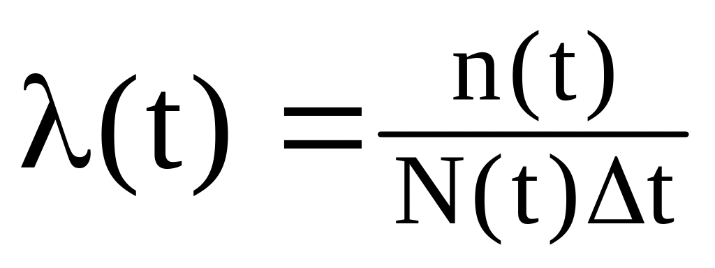 Интенсивность отказов λ(t) – это отношение среднего числа отказавших в единицу времени объектов к числу объектов, оставшихся работоспособными: