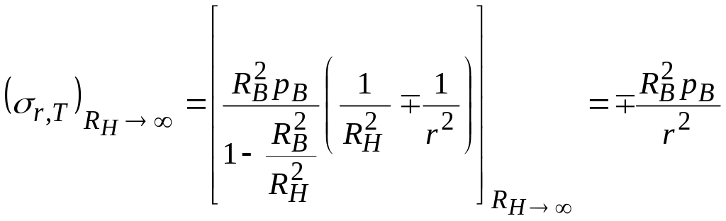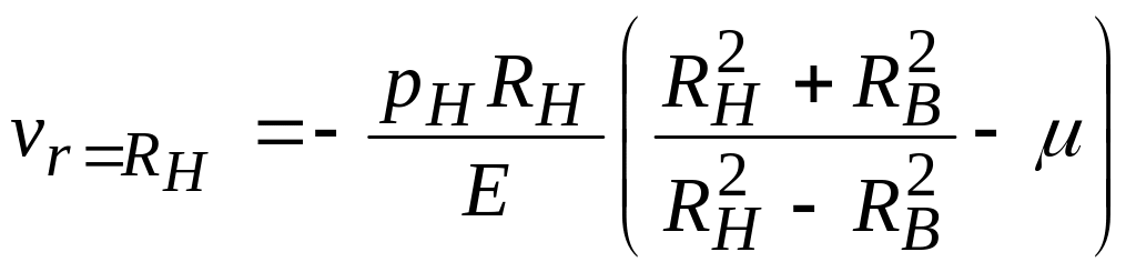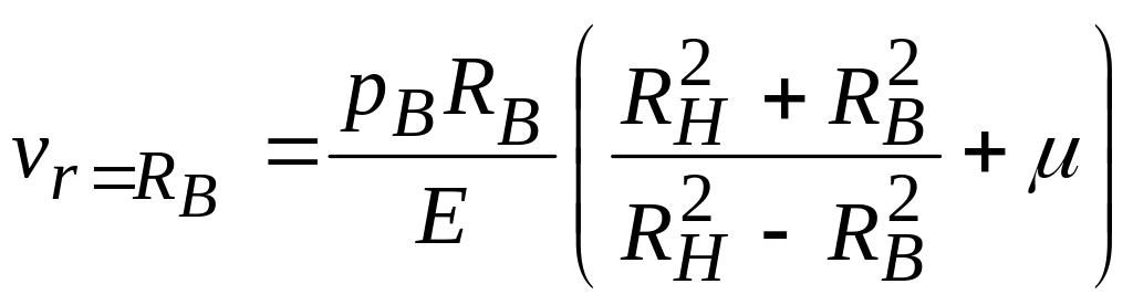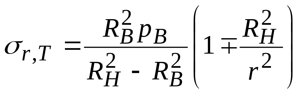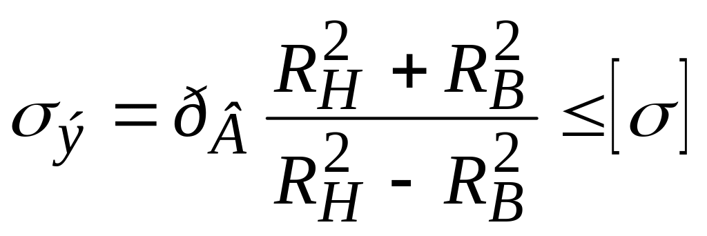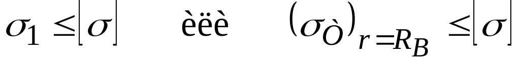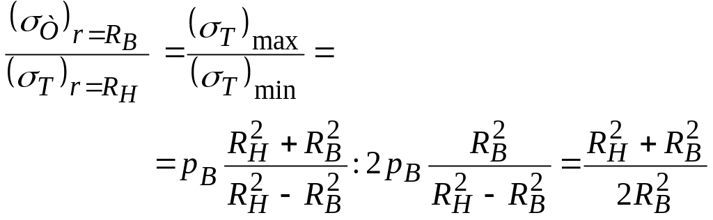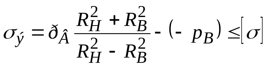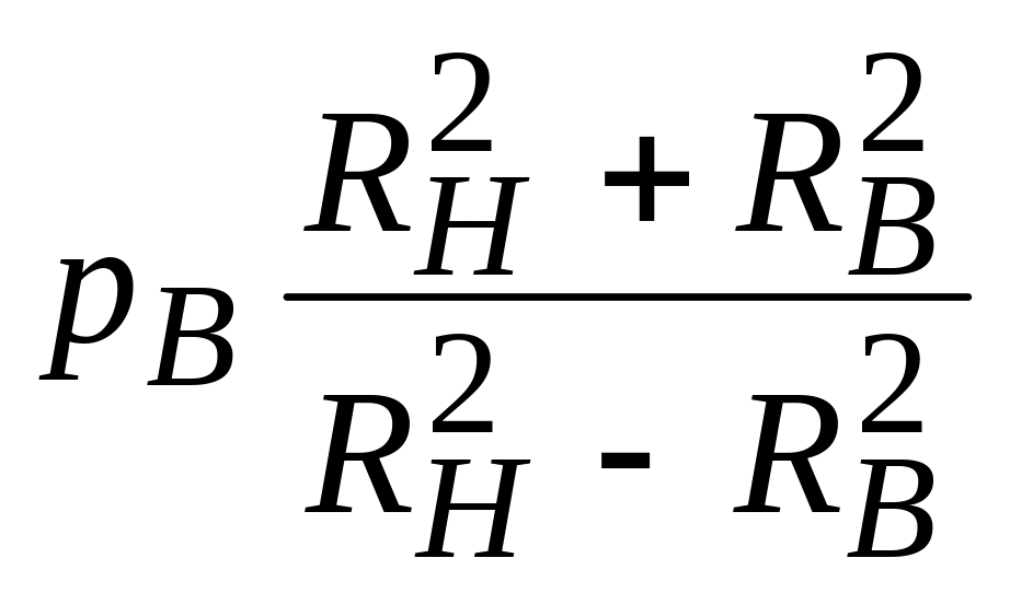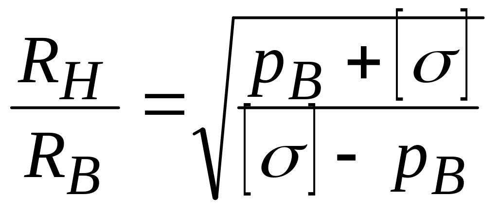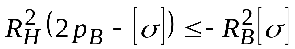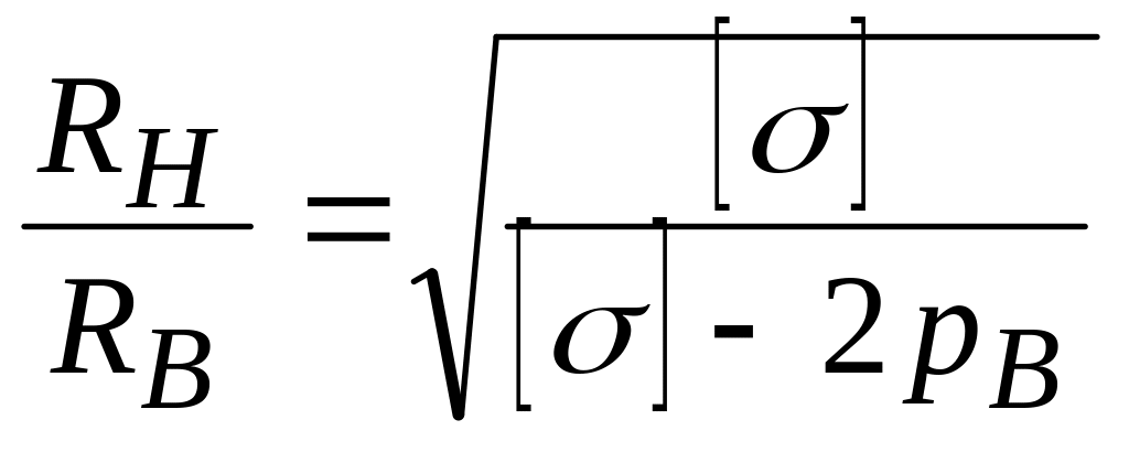 Выражение (3.17) показывает, что при внутреннем давлении рВ, приближающемся по величине к половине допускаемого напряжения [], отношение стремится к бесконечности и увеличением наружного радиуса РH удовлетворить условию прочности (3.16) нельзя.