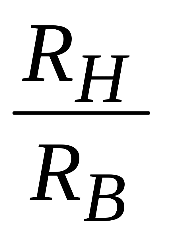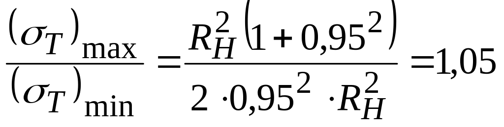 Из формулы (3.13) видно, что чем меньше толщина кольца, т. е. чем ближе друг к другу значения RB и RH , тем ближе отношение (3.13) к единице, т. е. тем равномернее распределяются напряжения T по толщине трубы. Например, при RB = 0,95, отношение