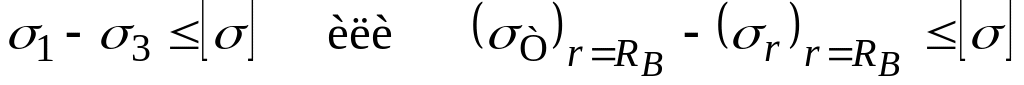 Составим условия прочности для толстостенной трубы, испытывающей внутреннее давление рВ. В зависимости от принятого предельного состояния для наиболее напряженной точки на внутренней поверхности трубы получим следующие выражения: