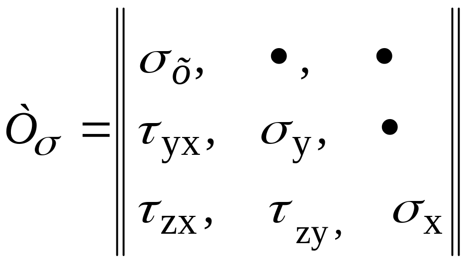 Таким образом, из девяти составляющих напряжений матрицы тензора Т шесть попарно равны друг другу, и для определения напряженного состояния в точке достаточно найти лишь следующие шесть составляющих напряжений: