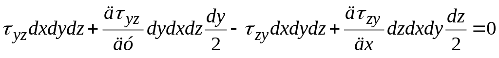 Если приравнять нулю сумму моментов всех сил, действующих на элементарный параллелепипед, относительно оси xc, параллельной оси х и проходящей через его центр тяжести, получим уравнение