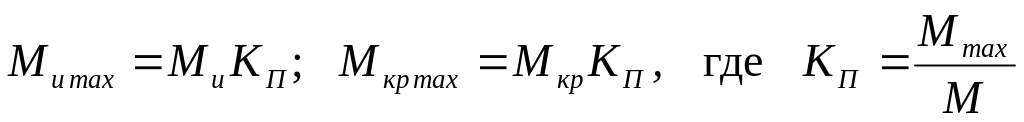 В расчетах на статическую прочность при перегрузках под Mu max и Mкр max нужно понимать номинальные моменты, умноженные на коэффициенты перегрузки, принимаемые по выбранному для установки в приводе электродвигателю, т.е.
