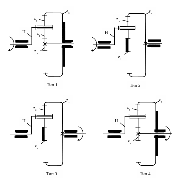 Рис. 3.14. Схемы заданных планетарных зубчатых передач
