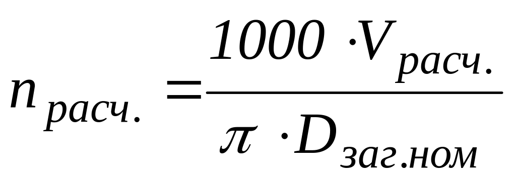 2.2.3.8. Вычислить расчетное число оборотов шпинделя токарного станка по формуле