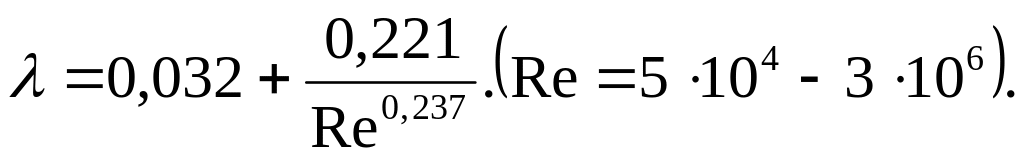 В IV зоне коэффициент может быть определен по полуэмпирической формуле Прандтля-Никурадзе