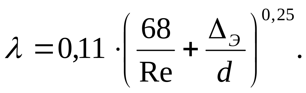 В 1952 году А.Д. Альтшуль предложил формулу, охватывающую все три зоны сопротивления при турбулентном движении жидкости в трубах с естественной шероховатостью