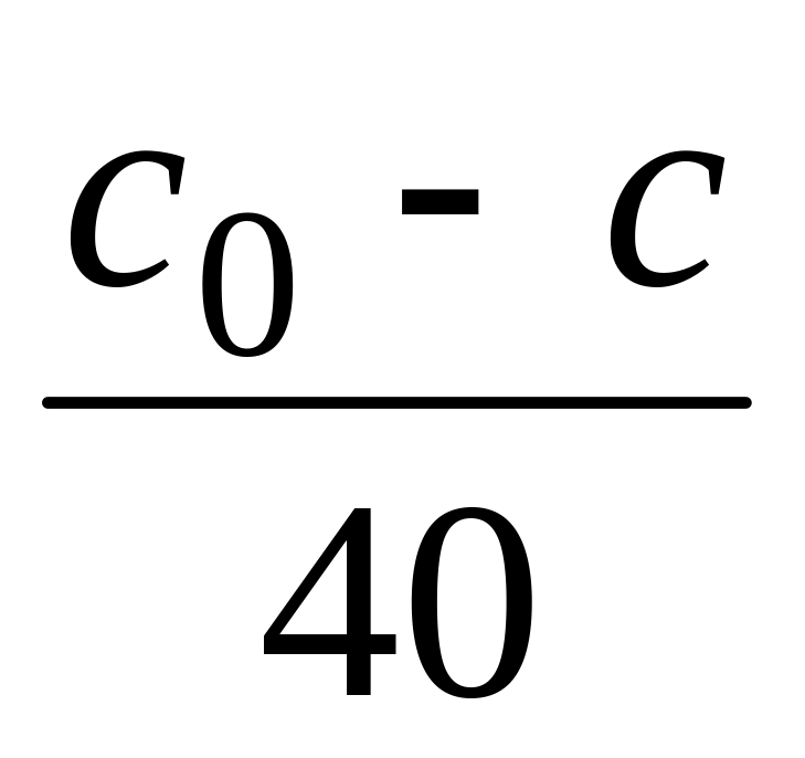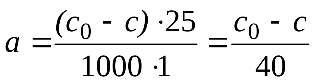 Если обозначить исходную концентрацию через c0, а концентрацию после адсорбции через c, учитывая, что кислота адсорбировалась 1 г угля в объеме раствора, равном 25 мл, то величина адсорбции a определяется по формуле