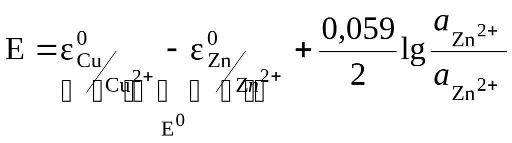 где E – электродвижущая сила гальванического элемента; + - потенциал положительного электрода; - - потенциал отрицательного электрода.