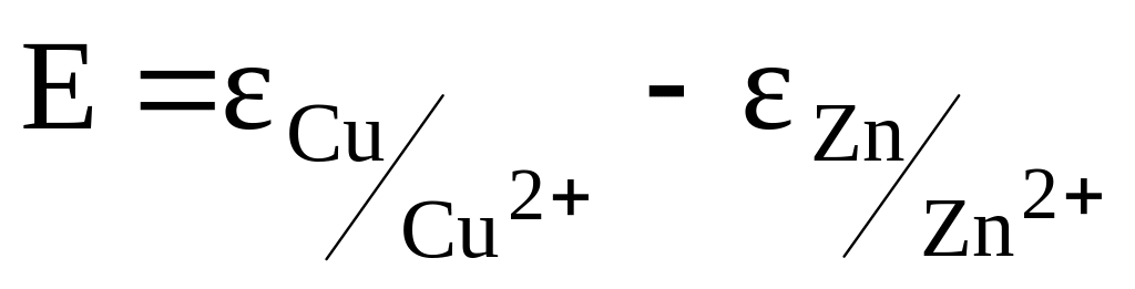 Итак, электродвижущая сила элемента Даниэля-Якоби с учетом электродных потенциалов равна: