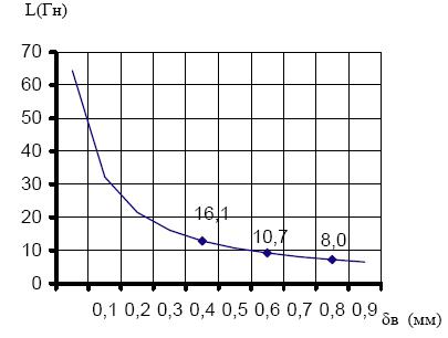 где L - индуктивность датчика, δв - длина воздушного зазора; n - число витков;