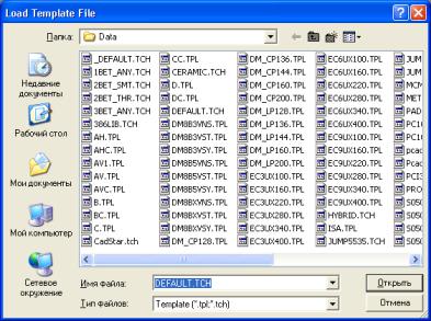 Технологические шаблоны (Technology templates, файлы с расширением имени *.ТСН или *.TPL) содержат начальную информацию о ПП: зазоры и сетка трассировки, данные о контактных площадках (КП) и переходных отверстиях ( ПО) и т.п. В дальнейшем все эти установки можно изменить по отдельности или загрузить новый шаблон после создания ПП. В результате загрузки технологического шаблона в текущий проект вносятся следующие изменения: