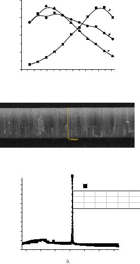 Содержание Fe в образцах было определено с помощью электронно-зондового микроанализа. Анализ полученных результатов показал, что оно изменялось от 2,75 до 5,06 ат. %. Из измерений эффекта Холла четырехзондовым способом по методике Ван-дер-Пау на установке ECOPIA HMS – 5500 удалось установить, что полученные образцы имеют электронный тип проводимости. Зависимости ρ(T), измеренные в диапазоне 77 – 300 К, имеют отрицательный ТКС, при этом наблюдается рост электросопротивления при увеличении содержания Fe. Это объясняется замещением ионов Zn2+ ионами Fe3+ и вытеснением их в междоузлия, а так как энергия ионизации Fe3+ значительно превышает энергию ионизации Zn2+, то увеличение содержания железа сопровождается уменьшением концентрации носителей заряда что приводит к росту электросопротивления.