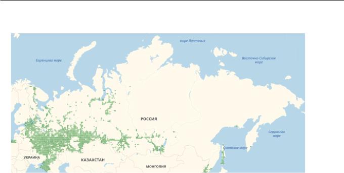 Рис. 1. Территория обслуживания российского сегмента системы мобильной спутниковой связи «Глобалстар»