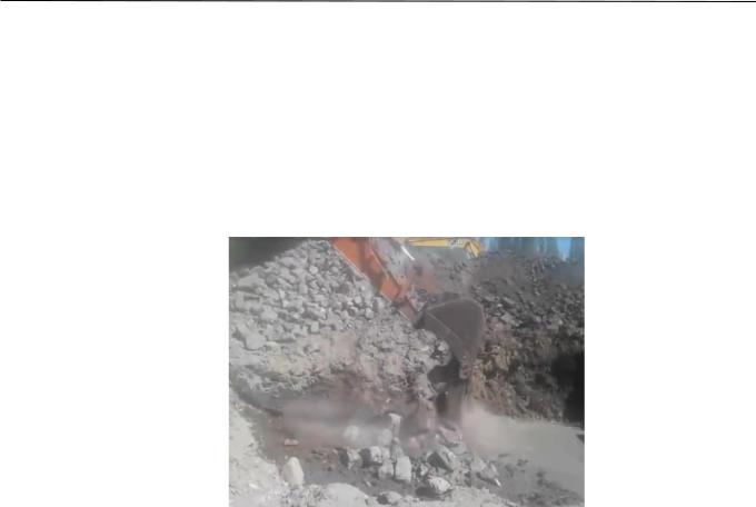 втрамбовывал сухой шлакоблок в водонасыщенный грунт (рис. 7). После первичного уплотнения работы продолжил виброкаток. Высота создаваемого искусственного основания составила 1,5 метра. Таким образом, вода будет находиться на этой глубине.