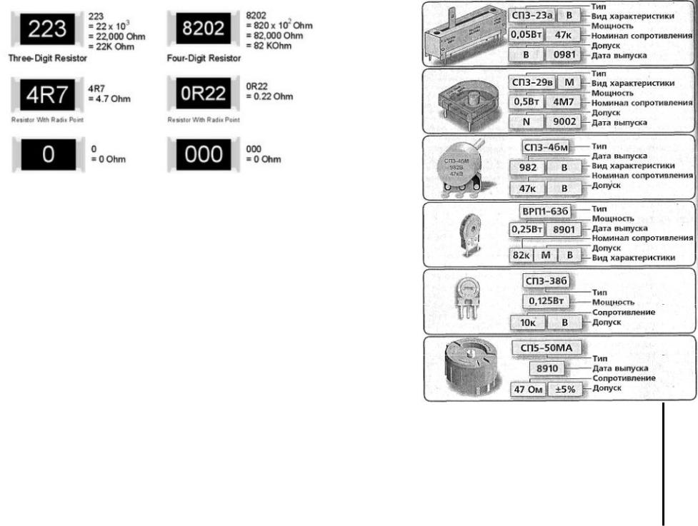 Рис. 1.48. Буквенно-цифровая маркировка отечественных переменных резисторов