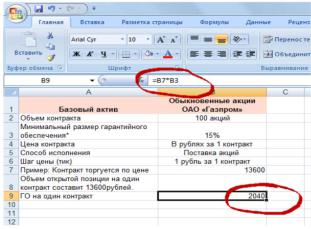 Находим гарантийное обеспечение. Для этого необходимо перемножить минимальный размер гарантийного обеспечения на цену торгуемого контракта, т.е. рассчитаем гарантийного обеспечения по формуле: