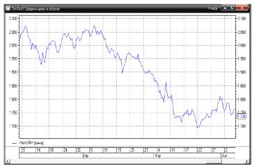 Для быстрого построения графика по инструменту, достаточно выбрать из контекстного меню пункт «График [параметр]», при этом параметр и инструмент определяются ячейкой таблицы, на которой было вызвано контекстное меню. Откроется окно диаграммы с настройками, заданными по шаблону. Эти настройки можно потом отредактировать. Через мастер графиков возможно создание новой диаграммы с произвольными настройками (по умолчанию параметры соответствуют шаблону). Последовательность действий при создании диаграммы через мастер графиков: