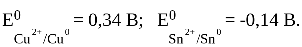 Сравним стандартные электродные потенциалы Cu и Sn (см. табл. 5.1)
