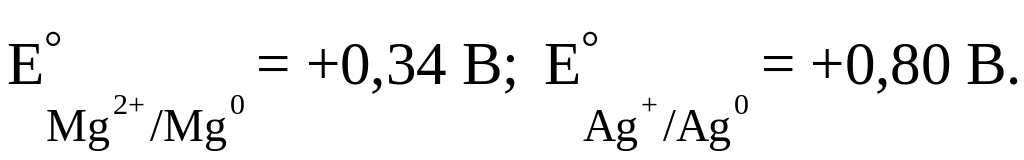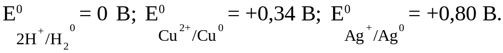 Решение. Записываем стандартные электродные потенциалы водорода меди и серебра (см. табл. 5.1)
