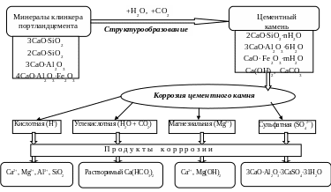 Рис. 3. Схема процессов структурообразования и коррозии цементного камня