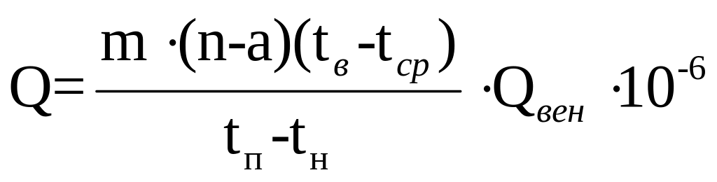 Расход теплоты на вентиляцию, МВт/год, определяется по формуле