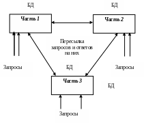 Распределенная БД состоит из нескольких фрагментов, размещенных на разных узлах сети и, возможно, управляемых разными СУБД. С точки зрения программ и пользователей, обращающихся к распределенной БД, последняя воспринимается как единая локальная БД (рис. 1.12).