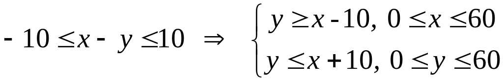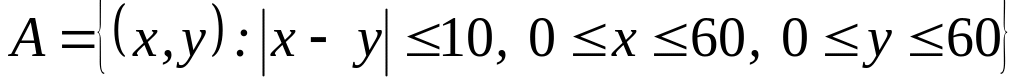 Благоприятные встрече исходы изобразятся точками в заштрихованной части квадрата (рис. 4), так как