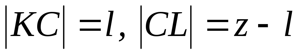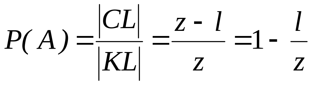 Пример 2.5. В точке С, положение которой на телефонной линии связи KL длины z равновозможно, произошел разрыв. Определить вероятность того, что точка С удалена от точки К на расстояние, не меньшее l (событие А).