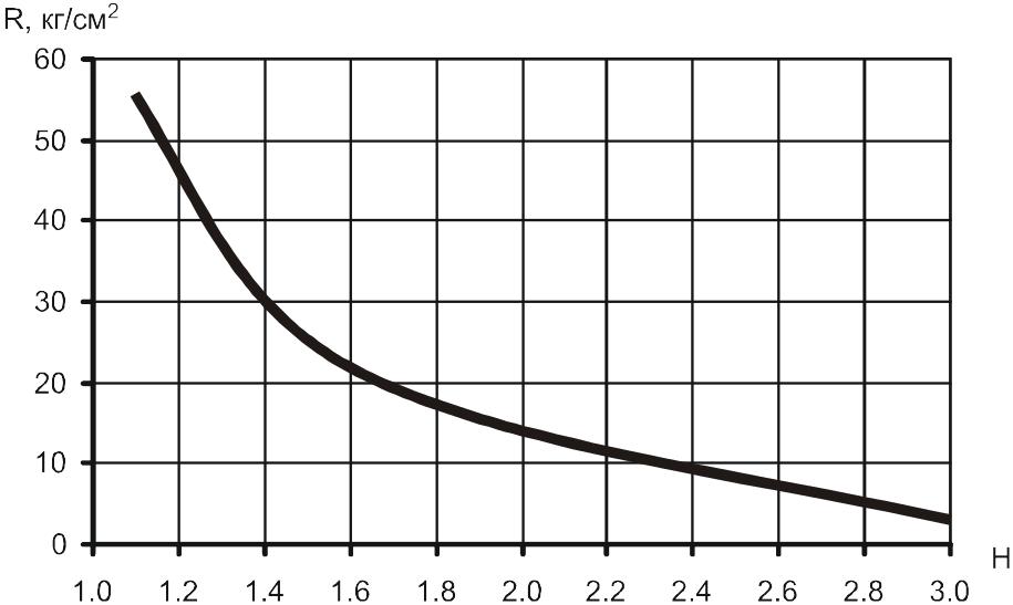 при использовании метода пластических деформаций (молоток Кашкарова) – соотношение диаметров отпечатков на бетоне и стандартном образце;