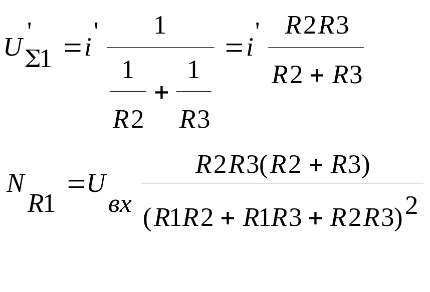 Для контура U’∑ ,R2, R3 преобразованной цепи по второму закону Кирхгофа