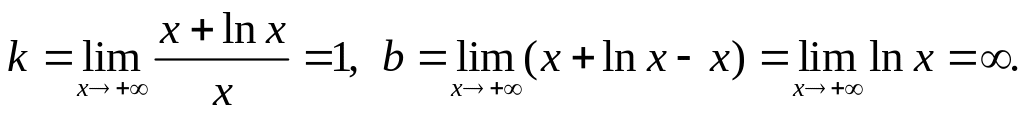 (то же при x – ). Если же не существует одного из пределов или один из этих пределов равен – или + , то у функции отсутствует наклонная асимптота при x + (то же при x – ).