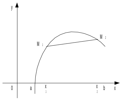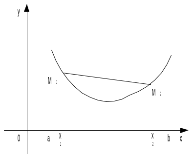 Дифференцируемая функция y = f(x) называется выпуклой (вогнутой) или выпуклой вверх (вниз) на интервале (a; b), если она удовлетворяет следующему условию: для любых различных точек