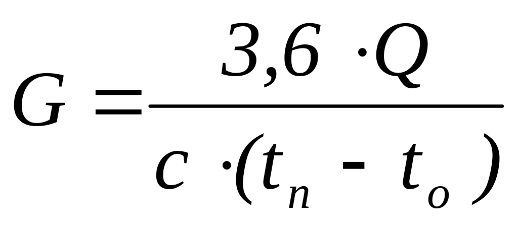 Расход воды на участке, G, кг/ч, вычисляют по формуле