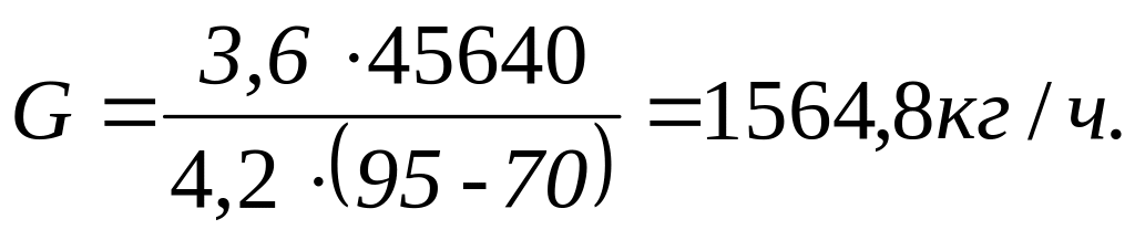 где Q – тепловая нагрузка участка, Вт; tп , tо – расчетная температура в подающем и обратном трубопроводе, С (указана в бланке задания к курсовой работе); с – удельная массовая теплоемкость воды, с = 4,2кДж/(кгС).