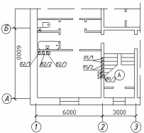 На рис.3.1. приведен фрагмент плана трехэтажного жилого здания с указанием мест расположения вытяжных каналов.
